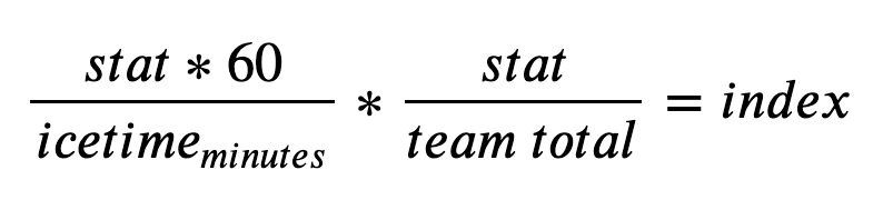 The work in this post is an adaptation of Ryan Stimson’s work in 2017. Using his dataset from The Passing Project, he was able to come up with 4 archetypes for forwards and 3 archetypes for defensemen. Unfortunately, the dataset he used does not seem to be easily available anywhere at the time of this writing in February 2023. Therefore, this work uses Moneypuck’s dataset and focuses on the last full season: 2021-2022. The approach is similar to Stimson’s: raw even-strength statistics are divided by ice time to get each players contribution per 60 minutes. This number is then multiplied by the percentage of the team statistic the player contributed to, allowing all player’s playing style to be evaluated regardless of quality and team playing style (i.e coaches that focus on defense vs offense). This process creates an index for each statistic that can be used in the clustering algorithm.